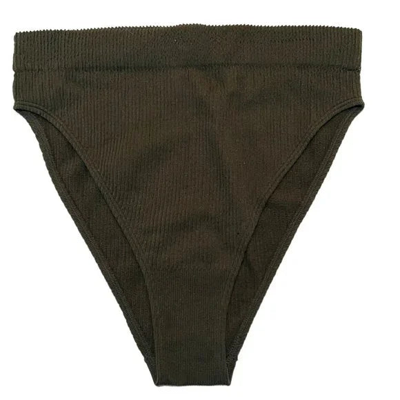 Aerie High Cut Bikini Pantie Underwear Olive Green Ribbed